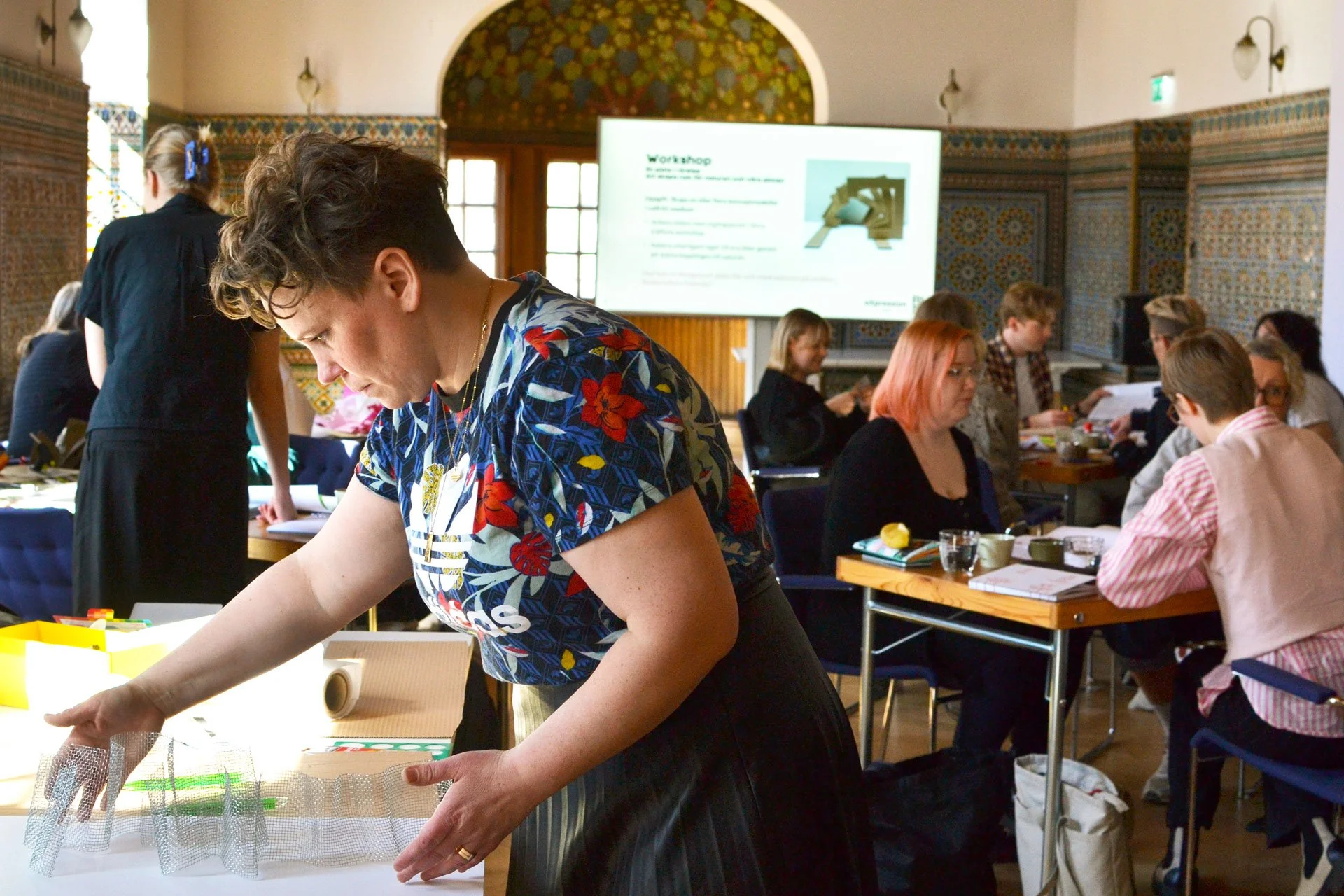 Deltagare i Kreativa Norrlands designverkstäder arbetar med sina konceptmodeller under presentationsdagen i Umeå. Foto: Ida Carlberg